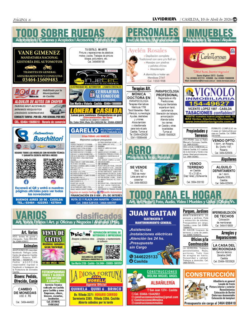 9 de Julio 2166. Casilda. Tel. 03464-422101.