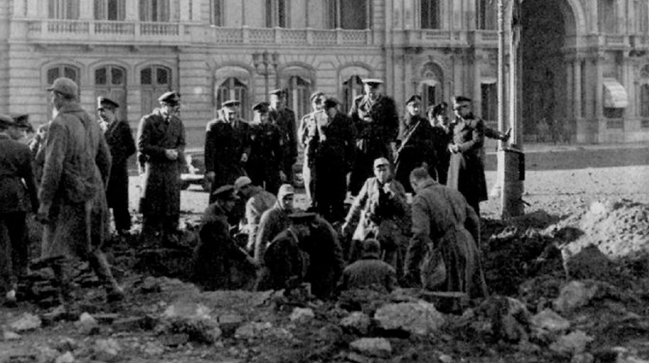 Aviones de la Fuerza Aérea y de la Aviación Naval de la Armada Argentina lanzaron explosivos sobre la plaza y otros puntos de la Capital, mientras que grupos de comandos civiles anunciaron, falsamente, la muerte de Perón y leyeron una proclama golpista.