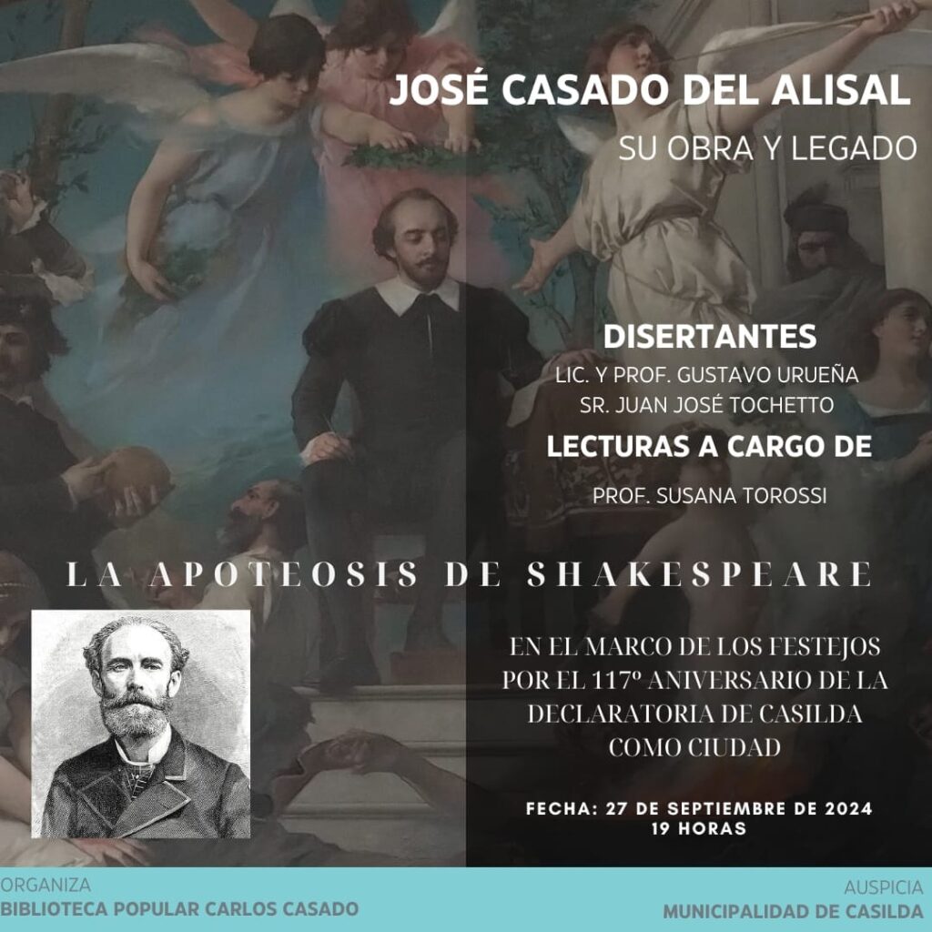 Este viernes 27, en el marco de los festejos por el 117° aniversario de la Declaratoria de Casilda como Ciudad, se llevará a cabo una charla con lecturas sobre «José Casado del Alisal: Su obra y legado».