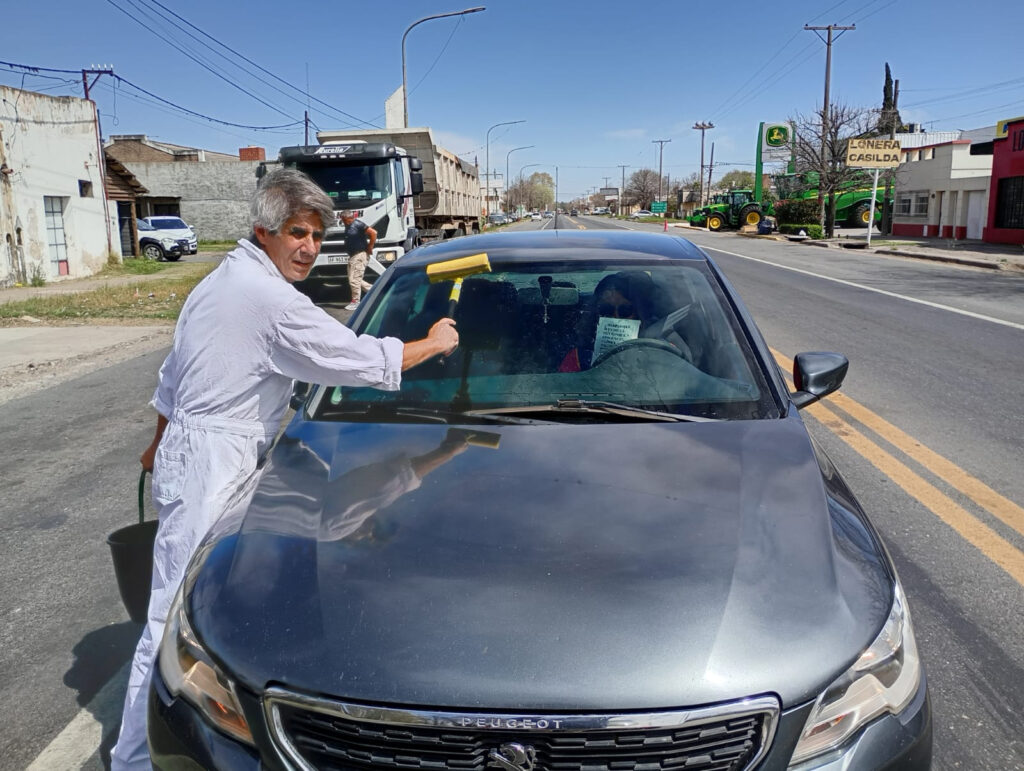Limpiaron parabrisas, charlaron y entregaron volantes a automovilistas y transportistas que detenían su marcha en el semáforo de ruta nacional 33 y bulevar Ovidio Lagos, ubicados frente al predio donde funcionan las instituciones que organizaron la movida.